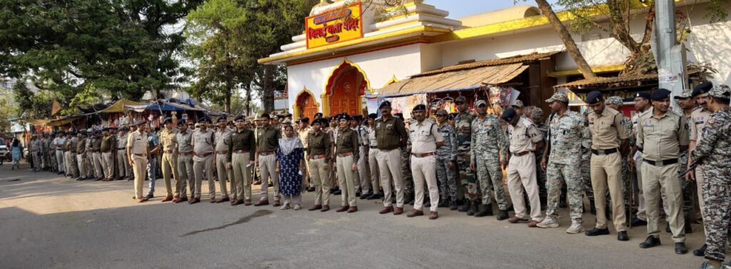 एकंर…होली त्यौहार के मद्देनज़र जिले में कानून-व्यवस्था की स्थिति को सुदृढ़ बनाए रखने, गुंडा-बदमाशों के मन में भय तथा आमजन में सुरक्षा की भावना स्थापित करने हेतु आज धमतरी जिला मुख्यालय एवं आसपास के संवेदनशील क्षेत्रों में पुलिस अधीक्षक धमतरी सूरज सिंह परिहार के नेतृत्व में पुलिस एवं प्रशासन द्वारा संयुक्त भव्य फ्लैग मार्च निकाला गया….